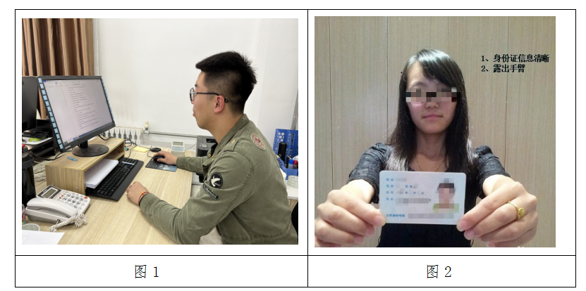4.模拟测试核对身份证及准考证,由考生手举身份证面向摄像头(图2),保持动作约60秒,监考员进行考生身份核验。