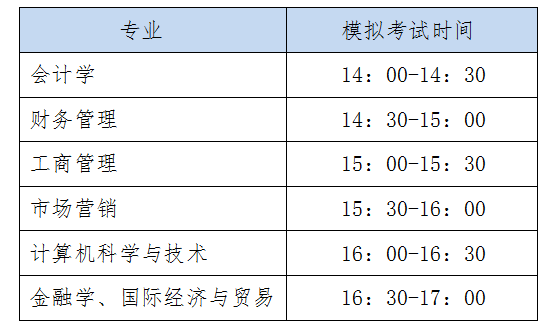 各专业模拟演练时间如下表所示: