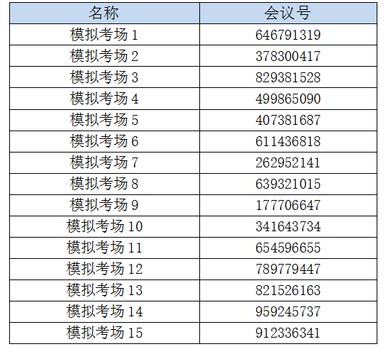 模拟演练腾讯会议号如下表所示: