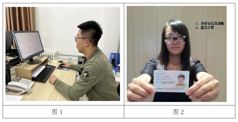 5.正式开考前核对身份证及准考证,由考生手举身份证面向摄像头(图2),保持动作约60秒,监考员进行考生身份核验。