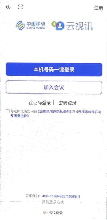 第一步:移动端登录/注册:在应用商店中搜索“云视讯”,下载“云视讯APP”。下载成功之后,在手机桌面上打开“云视讯”应用,进行登录/注册。