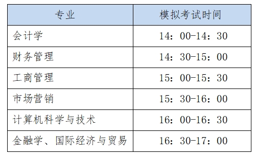 各专业模拟演练时间如下表所示: