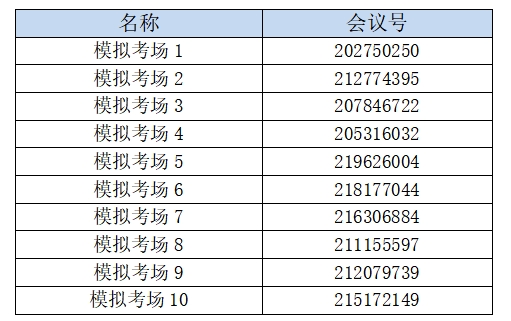 模拟演练云视讯会议号如下表所示: