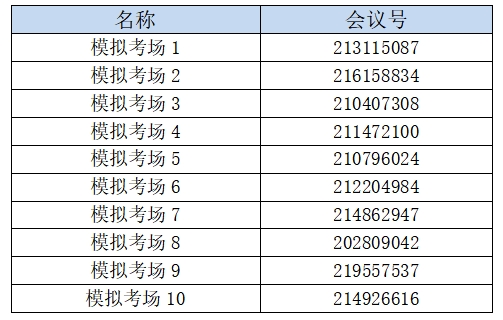 模拟演练云视讯会议号如下表所示: