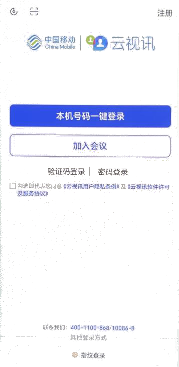 第一步:移动端登录/注册:在应用商店中搜索“云视讯(中国移动)”,下载“云视讯APP”。下载成功之后,在手机桌面上打开“云视讯”应用,进行登录/注册。