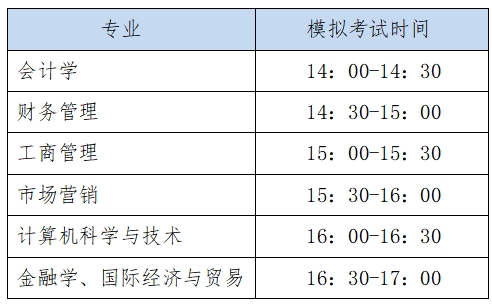 各专业模拟演练时间如下表所示: